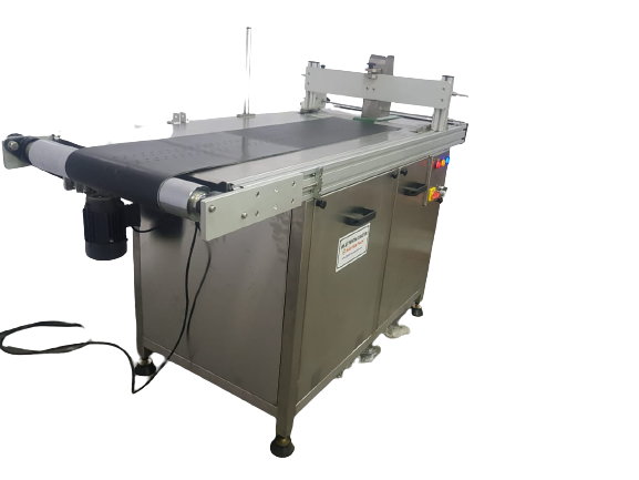 As the name implies, these conveyors are used to print batch numbers, manufacture / expiration dates, MRP, and other information on completed products using an inkjet printer. These are belt conveyors with a belt width of 300mm. Conveyors with a length of 1200mm are available ex stock. On request, custom sizes are available. Fixed and variable speed conveyors with flexible side rails are offered to accommodate a variety of items on a single conveyor.